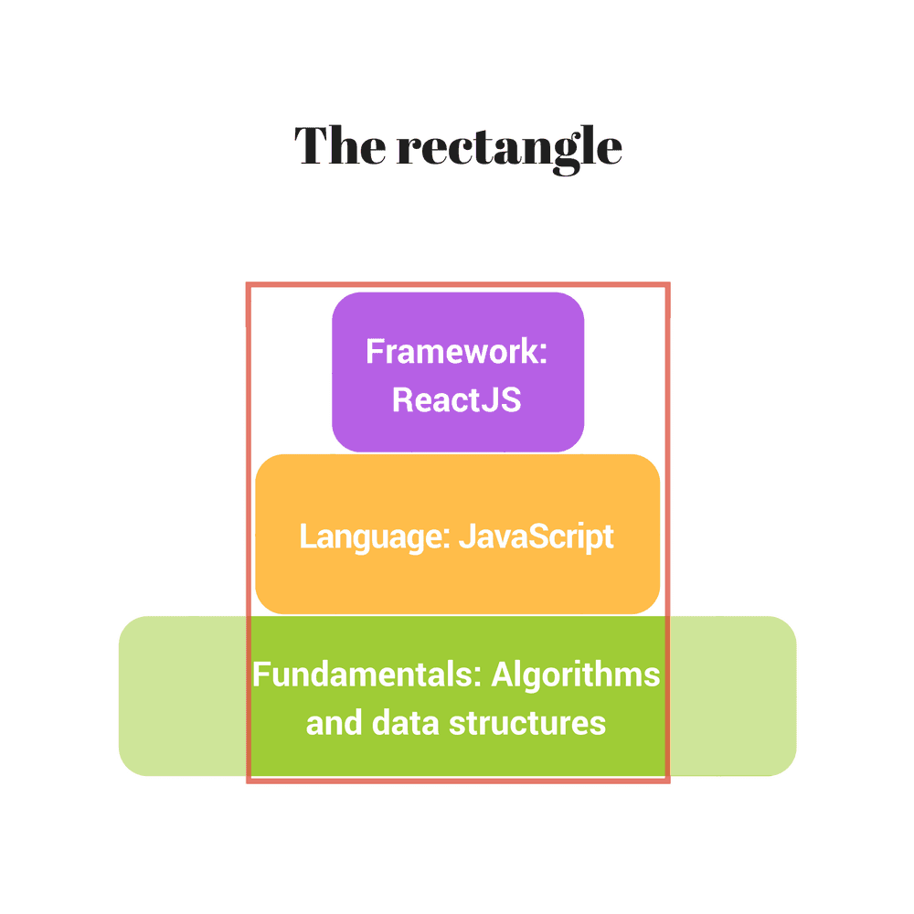The upper level is an expert developer, which mastered all 3 directions: fundamentals, the language, and framework. He is represented by a triangle with a solid base.