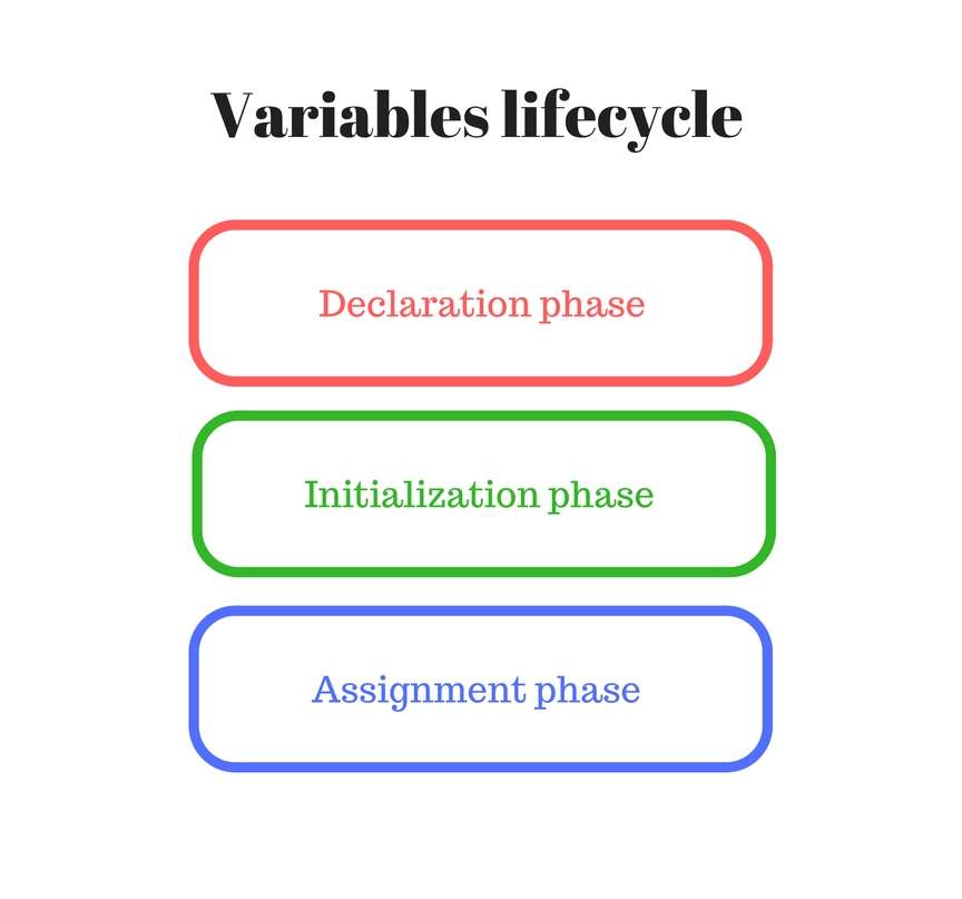 On assignment phase variable = 'value' the variable receives its initial value (step 2).